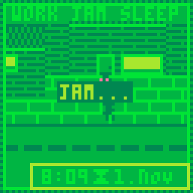 Bring the Jam Home is a Gameboy game that challenges you to survive in a world where jam is the only currency. You work at a jam factory and get paid a jar of jam a day. But how will you store your precious jam in your small flat?